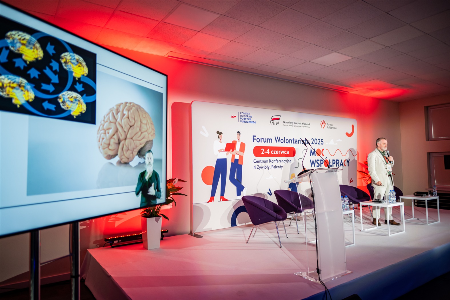 Drugi dzień Forum otworzył inspirujący wykład prof. Marka Kaczmarzyka o neurobiologicznych podstawach współpracy i wspólnotowości oraz rozmowa z laureatami Konkursu na Koordynatora Korpusu Solidarności – osobami, które swoją codzienną pracą wspierają i rozwijają wolontariat w lokalnych społecznościach.